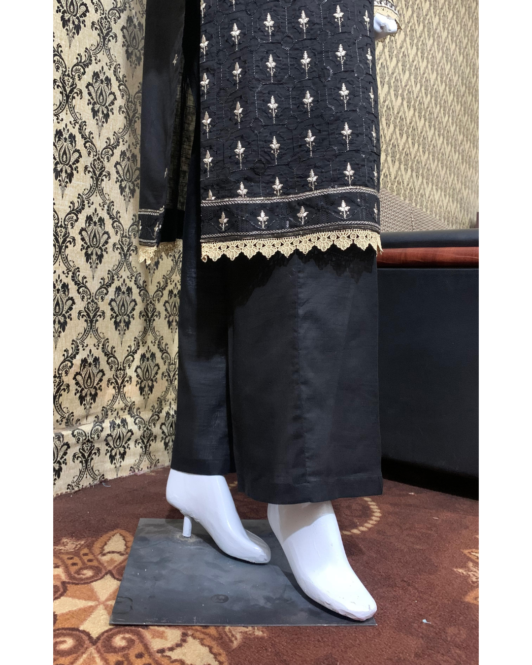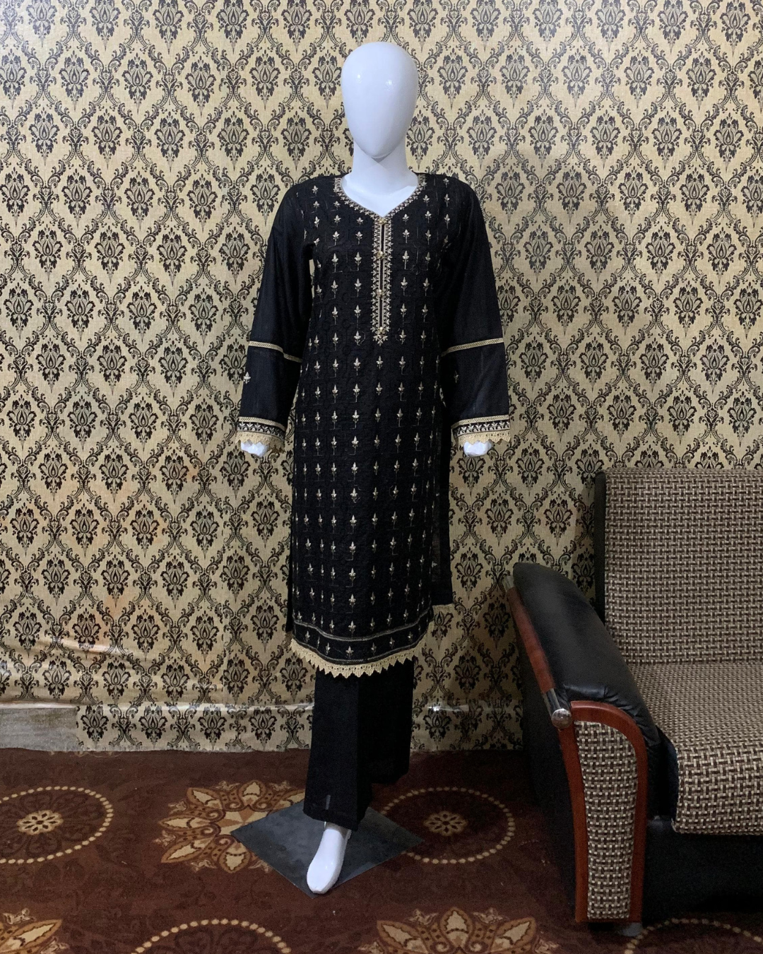 Make a striking statement with our Black Embroidered Lawn 2-Piece Stitched Suit, a timeless ensemble that perfectly blends classic elegance with intricate craftsmanship. This ready-to-wear outfit offers both comfortable wear and sophisticated style, ideal for making a memorable impression at any event.